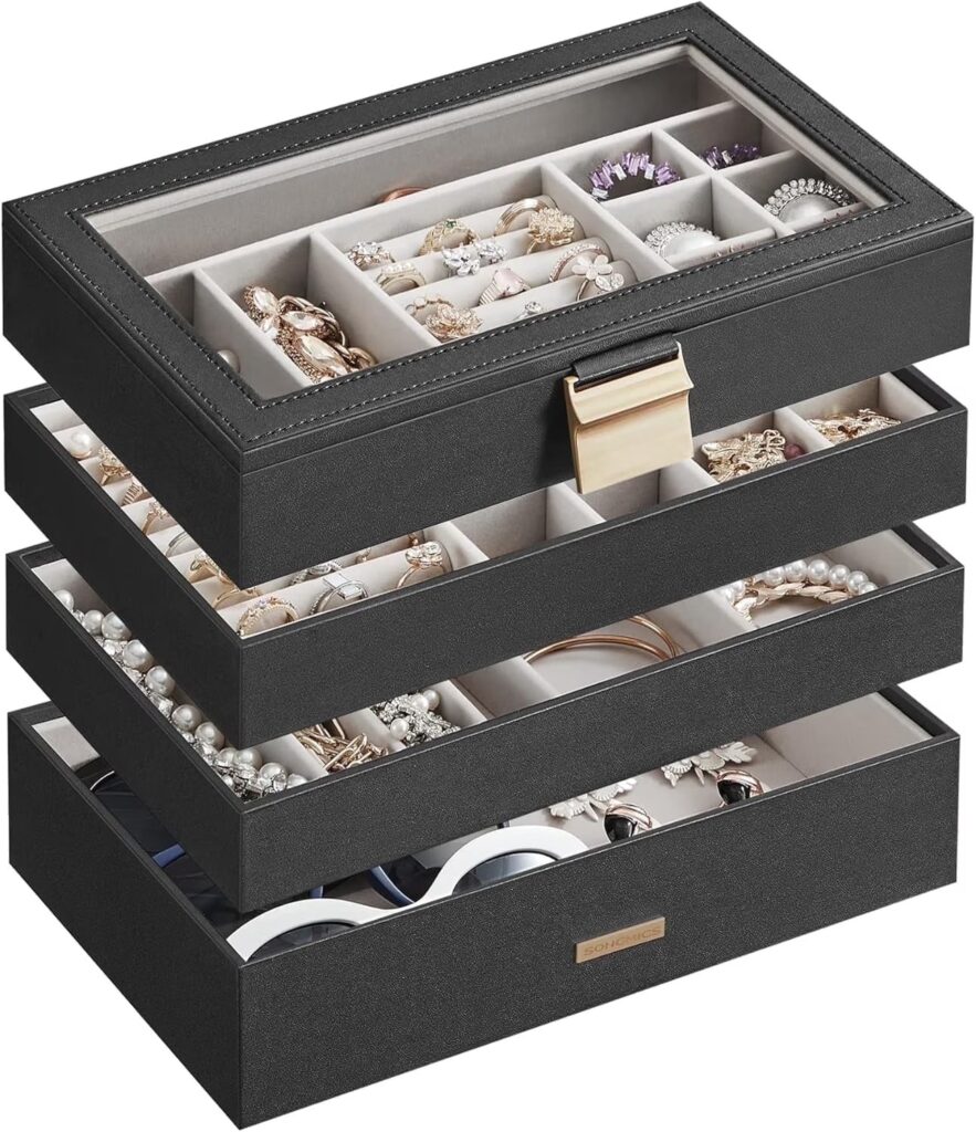 Furthermore, German supplier Dahlinger’s new ‘Choice’ series of stackable jewelry trays, featuring a black leather-look paper exterior, cream velvet lining, and a clear lid, aims to provide jewelers with a cleaner, more efficient display solution.