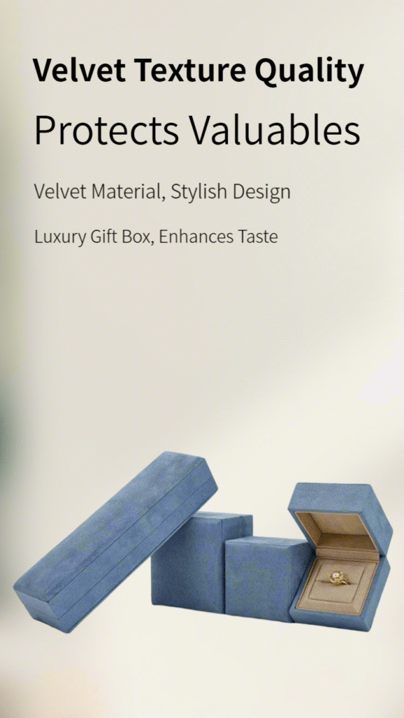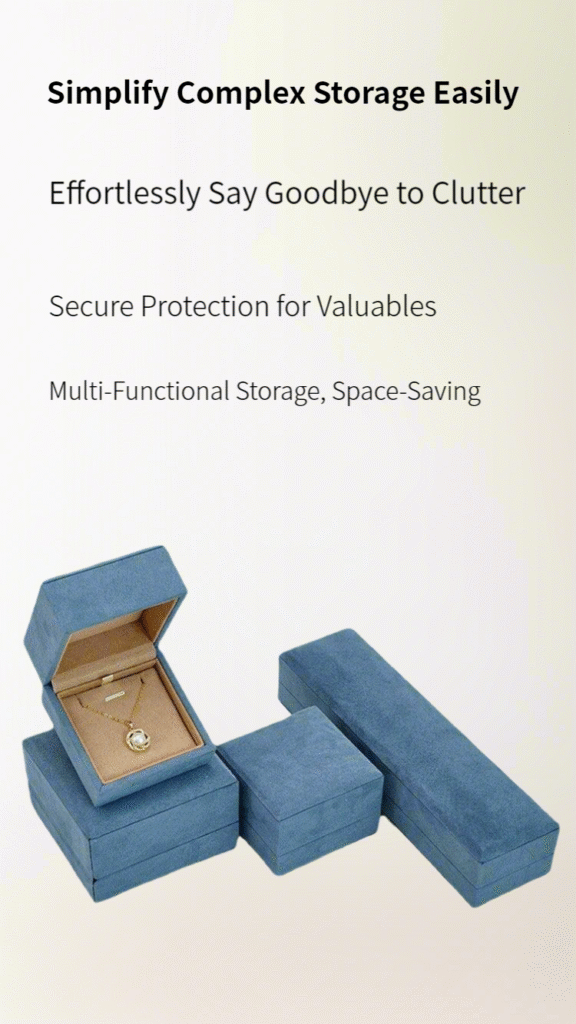 This collection features jewelry boxes crafted with a premium microfiber interior, offering elegant and protective storage for rings, earrings, necklaces, and complete sets. Available in multiple sizes and a selection of rich, dust-resistant colors.