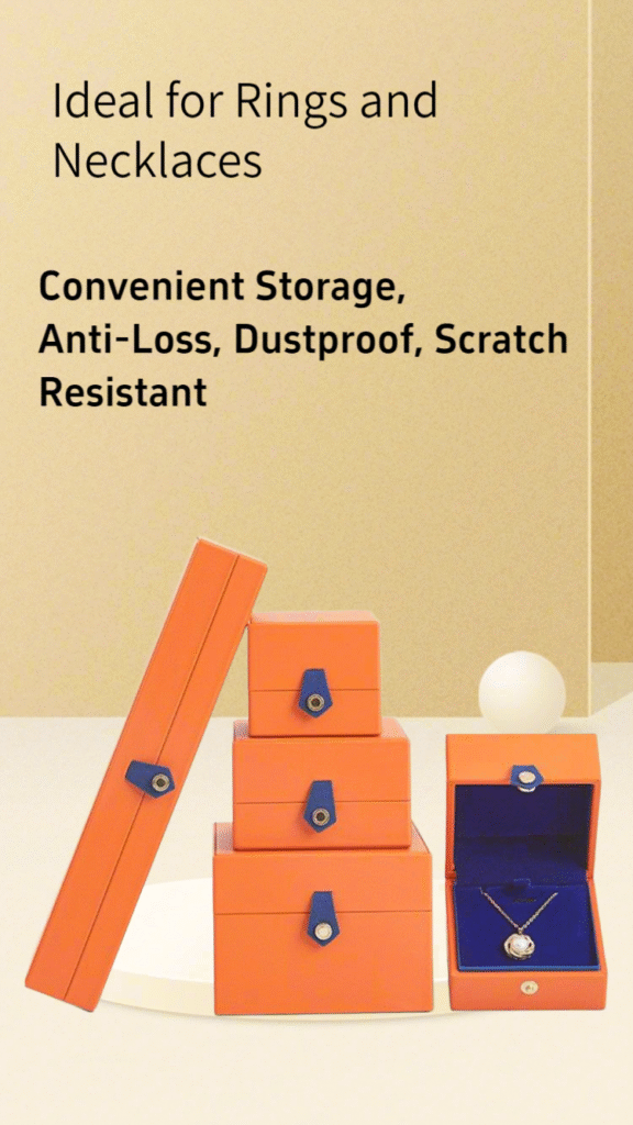 This collection combines the durable, easy-care elegance of premium PU leather exterior with a soft, protective velvet interior. Designed in the modern luxury style, it offers versatile and reliable storage for rings, earrings, necklaces, bracelets, and complete sets in various sizes.