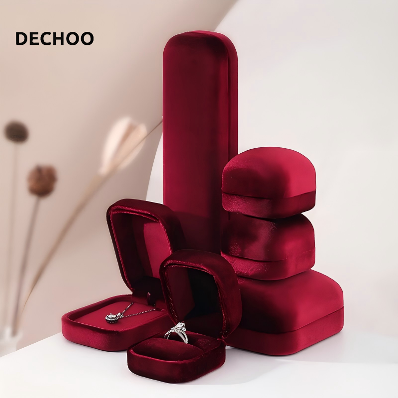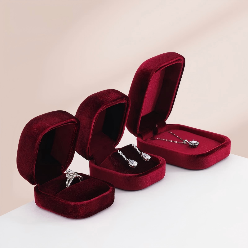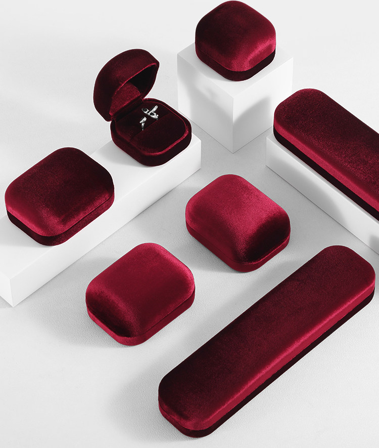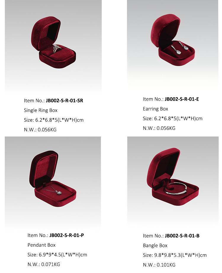 JB002-S-R-01 Luxury Silk Velvet Whole Set Jewelry Box Customization Accept